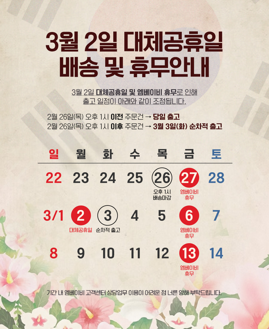 2026 3.1일 대체공휴일 배송 안내 |